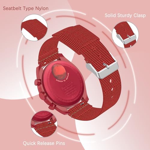 【Compatibility Models】Weclome to Wizvv Store! This Band Replacement Compatible with Omega x Swatch Moonswatch Speedmaster, and also fits any 20mm lug width watches. Whatever you look for an Omega Swatch Moonwatch Speedmaster strap for Mercury, Venus, Earth, Mars, Jupiter, Saturn, Uranus, Neptune, Pluto, Sun, and Moon in general, our selection has you covered. Please check your watch model before purchasing. (No Smartwatch included). 【Robust & Durability】The 20mm Omega watch bands are made of durable nylon material, more robust and light to wear. A wild adventure going on when you wear it. With a nice sheen to it, revealing luxurious from understatement look. It’s a real "a Huge Wristed wears a little" watch band. The loop won't too high, appropriately sized for two straps to fit through. Particularly suitable for Industrial work or a mount climbing trip. 【Adjustable and Integration】Fit for 6.2-8.2 inches wrists(160mm-210mm), the watch band replacement with steel buckle & stuck hole, you can adjust the length of the strap to fit your wrist possibly to the extend. Our moonswatch straps are easy to install and remove, package include strap * 1, pins * 2, tool * 1. 【Beautiful Gift】Multiple colors for choice! Choose the appropriate color of watch bands according to your dial, to create a classic/stylish/fresh/vibrant look at your will to suit for different occasion. Meanwhile, it's a perfect gift for your family, lover and friends during Thanksgiving Day/ Christmas/ Valentine's Day/ Mother's Day/ Father's Day. 【Excellent Shopping Experience】Wizvv provide a wonderful shopping experience! Any damage to the strap itself (including damage caused by personal installation) can be returned and exchanged free of charge. If you have any problems during using the smart watch bands, just contact us without hesitation and then we will offer a proper solution. #179,071 in Clothing, Shoes & Jewelry ( ) #287 in