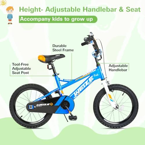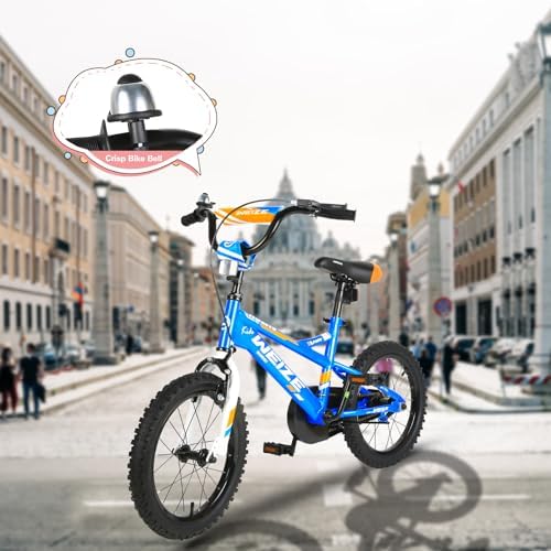 【Size Recommend】: 18" bike for 5-10 years (42"-52") boys & girls. Note: Measure kid’s INSEAM and compare with SADDLE HEIGHT to check if the rider can touch the ground. 【PERFECT FOR BEGINNERS】: Our bicycle are engineered specifically for a kid's proportions, smaller grips, and lightweight frame create an easier ride and control. 【Protected】: Easy to operate handbrake, which is suitable for small kids who don’t have enough power to control brake by hand. In the meantime,the full coverage chain guard to protect little hands, feet, and clothingand provide a safer pedaling environment. 【Durable Wheels & Sturdy Frame】: Made of premium high carbon Steel to survive the bumps of learning. Anti-slip tires and detachable training wheels ensure steadiness and are helpful for beginners to practice balance. 【EASY TO INSTALL】: The children bike comes with 85% Pre-assembled body and the basic assembly tools.You can watch the assembly video on our page first before splicing bicycles.