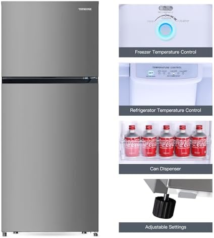 THFRIONE Top Freezer Refrigerator 30-Inch with 17.6 Cu. Ft.Capacity, Adjustable Thermostat Control, Full Size Freestanding Frost Free Fridge for Garage/Office/Home/Apartment, Stainless Steels Grey