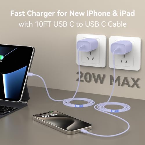i.Phone 15 Charger Fast Charging, 10 FT Long USB C to C Charging Cable Cord with 20W i.Phone Fast Charger Block for i.Phone 15/15 pro/15 pro max/15 Plus,i Pad Pro 12.9/11 in,i Pad air 5/4