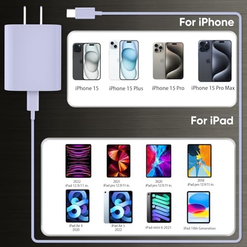 USB C i.Phone 15 Charger- The USB C power adapter use the PD 3.0 fast charging technology provides maximum 20W output power, fast charge i.Phone 15/15 Plus/15 Pro/15 Pro Max to 50~57% in just 30 minutes. i.Phone 15 charger fast charging- 20W PD USB C wall charger plug fast charge for i.Phone 15/15Pro/15 pro max/15 plus. Please note this ONLY fit for the newest i.Phone 15 series, other old i.Phone models (i.Phone 14/13/12/11/X/8 series)will not compatible. 10FT Long i.Phone charger Cable- 10 FT extra long USB C to USB C cord equips automatic chip recognition function, full support with i.Phone 15 series. And the 10 foot (3meter) charging cable length allows you charge your i.Phone 15 and i pad models from extra long distance, makes your life more easier and convenient. Superior Safety Fast Charging- 20W i.Phone 15 pro max charger provide intelligent circuit design to keeps your i.Phone 15 be safe from over-current over-voltage over-heating , short-circuiting, exhaustive protection while charging. What You Get- 2 pack 10 foot C to C type fast charging cable, 2 pack USB-C i.Phone charger fast charging block! Long-time Worry-Free Friendly Support! If you have any questions, don't hesitate to contact us! We are at your service 24 hours!