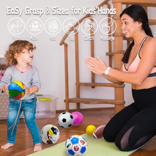 GREAT VALUE 7-PIECE SPORTS PUZZLE BALL SET! Comes with 1 pump(metal pin),Colorful Basketball (7in), Soccer Ball (6.2in), Football (5.9in), Thorn Ball (6in), Volleyball (4.7in), Earth Pattern Ball (8.5in), Number Soccer Ball (8.5in). Carefully put together set, the perfect for little hands to grip and play with for outdoor activities and the kids can enjoy a variety of games. FUN SPORTS BALL TOY: Our kids ball is soft and easy to hold and throw. Bright colors, different pattern balls, children can play tumbling, counting colors, games or put them in the ball pit. Attract children's attention and cultivate color recognition and hand and foot coordination. PLAY ANYTIME, SAFE: It has passed the official CPC safety certification and complies with toy safety requirements. Perfect for indoor and outdoor play,children will not be bored when traveling outdoors, perfect for practice and outdoor play - exercise learning, sports fun? Yes - have fun and love sports! Give your child a fun set of ball toys for kids. BEST GIFTS: Infants and toddlers are the golden period for babies to grow up!Don't let the children continue to be addicted to electronic products! Encourage a healthy and active lifestyle with the sports ball set.Promoting exercise from an early age can lead to a great body and a better life for your child by keeping them positive, brave and alive. Surprise your little ones on special occasions like birthdays or holidays. 100% SATISFACTION GUNARANTEED: You can rest assured that if for any reason you are not 100% satisfied, contact us immediately and we will refund your money no questions asked. Make you 100% satisfied and provide the best customer service!