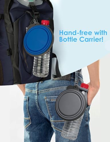 【Unique and Different】Aonkey dog bowl set is in a league of its own, addressing issues from feedback on other bowls. The upgraded carabiner boasts a larger, sturdier opening, reducing the risk of breakage. Plus, enjoy the added convenience of bottle carriers, compatible with most cola-shaped water bottles in the market. 【Revolutionary Structure】Say goodbye to the hassle of assembled plastic rings. Aonkey's foldable dog bowl boasts an upgraded structure, integrating soft silicone with a hard rim. No more worries about the ring coming off or cracking, and the clip hole remains intact. 【Unmatched Stability】Thanks to the integrated hard rim, our dog bowl stays sturdy when unfolded. No more spills or losing structure. Carry it confidently with one hand, even when it's full of water. 【Perfect for On-the-Go】These travel bowls are a breeze to pack since they collapse effortlessly. Clip them to a backpack or water bottle – ideal for outgoing to the park, hiking, driving, or any social activities with your furry friend. 【Safety First】Crafted from high-quality, food-grade silicone with a tempting beef flavor, our dog foldable bowl eliminates the typical silicone smell that dogs dislike. BPA-free, dishwasher safe, it's not just convenient but also healthy for your pet. #1,769 in Pet Supplies ( ) #4 in