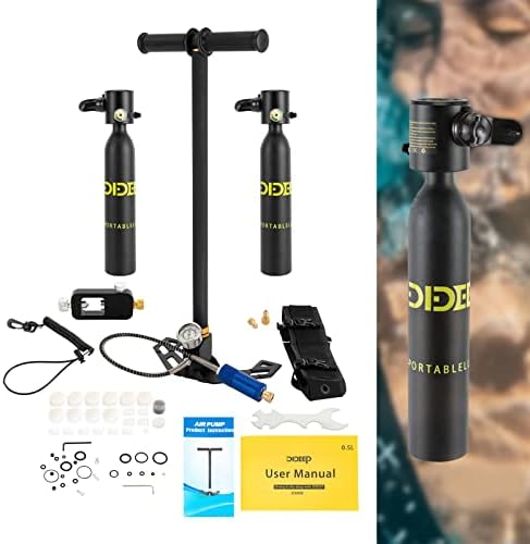 ?【Stable Oxygen Supply】This snorkeling equipment has two independent 0.5L oxygen cylinders can provide you with a stable supply of oxygen, thus ensuring your diving safety. ?【Efficient Filtration】This outdoor rescue cylinder tank unidirectional air nozzle can effectively filter harmful substances, so you can breathe pure air. ?【Safety Protection】 The built-in explosion-proof valve and luminous waterproof pressure gauge make its pressure value clearly visible at a depth of 80 meters underwater and will automatically release the pressure for explosion-proof, thus ensuring your safety in the process of use. ?【Easy to Carry】The compact structure of the mini scuba tank (13.86 inches high, 2.36 inches wide) makes it more comfortable to wear, thus not overburdening you while diving. The carry bag inside the package also help you carry it more conveniently anywhere you go. ?【Easy to Maintain】 The detachable design and mirror-treated smooth surface make it easy to clean, you just need to wipe it gently with a dry rag to make it look new.