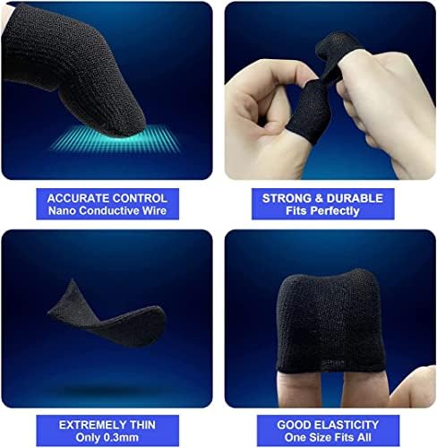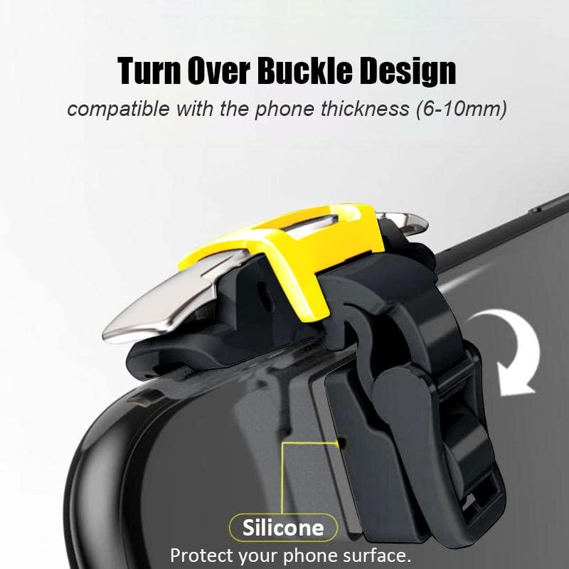 【Using Tips】These M9 Mobile Game controllers are using the sensitive real mouse micro switch inside. So there are several phones which have the electromagnetic problems. This will cause the triggers touch the screen automatically. Please do not worry about this and you just need to turn off the screen and turn on again. This issue will solved right away. 【Perfect Compatibility】These M9 Mobile Game controllers are compatible with iPhone, iPad and most Android Phones, without even remove your case.(The thickness of the compatible mobile phone should be less than 10mm.) These 4-fingers-operation mobile game controllers are suitable for a variety of shooting games, including PUBG, Call of Duty, Fortnite, Knives Out, Rules of Survival, Survivor Royale, Critical Ops etc. As long as the game allows customizing and draging the keys. 【Small and Lightweight】The PUBG game triggers are portable and tiny for you to put them into your pocket, and have them for gaming when in office, school, trip, camping and play games anywhere and anytime. With the 6 trigger PUBG mobile controller, you can simultaneously move, turn, aim and shoot by using the index fingers to press the buttons, which can eliminate the trouble that use thumbs only to make all operations. 【Mechanical Touch】2 triggers PUBG mobile controller designed for longevity with greater durability and responsiveness, more than 2 million click. Fast mechanical keys with medium resistance, precise actuation, audible click sound, and tactile bump feedback. Easy To Use, High Sensitive, Physical Button Feedback. Using this PUBG mobile game controller, you can move, angle adjust, aim and shoot at the same time with the thumbs and index fingers of the left and right hand. 【Super Gaming Experience】This PUBG game triggers is made of ABS and alloy, durable and ergonomic. 6 trigger PUBG mobile controller electroplated alloy materials, mouse buttons, smooth touch, six-finger linkage, auxiliary pressure grab, one-second burst, dominate the game battlefield, and enjoy the ultimate gaming experience. Call of Duty mobile controller are sensitive to shoot and aim, no Power supply and driver needed, easy to use and high precision, increase your game score! 【High Sensitive】100% brand new. With copper fiber covered, finger sleeves for gaming ensures your every touch is accurate and effective. More sensitive than silver fiber. 【Sweat-Absorbent & Breathable】High-quality copper fiber mobile gaming sleeves is lightweight, breathable and has good sweat absorbing ability. They allow you to separate your thumb with the touch screen, fast sweat kick-away and fast dry. 【13 in 1 Combo Kits】Blow is all the contents you will receive: 2pcs L1R1 Controllers/9pcs Finger Gloves/1pc Keychain/1pc Storage Case. You can tidy all these gaming accessories into carrying case and bring them with you tidyly and easily.