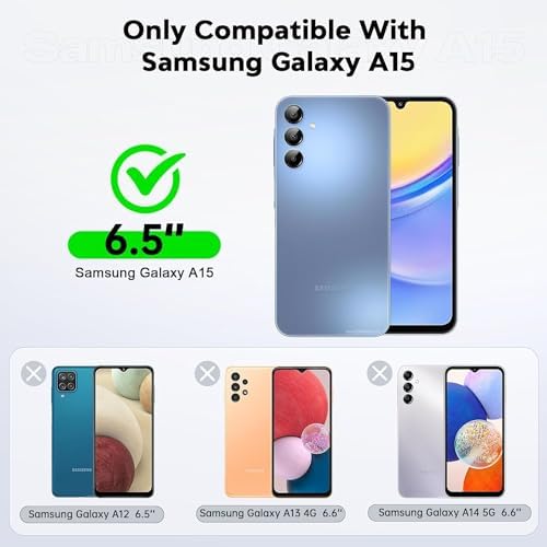 [Compatible Model] - Specially designed for Samsumg Galaxy A15 5G [6.5-inch]. no suitable to any other phone model ,so please note your phone model carefully before you place the order.Come with 2 PCS tempered glass screen protector. [Military Grade Protection] Unique detachable design and 3-in-1 Military Grade protection: shockproof, anti-scratch and drop protection. Withstands scratches, bumps and impacts. [Enhanced Screen and Camera Protection] Equipped with high-quality tempered screen protector and raised lip protection for the screen and camera, it is a double guarantee for the screen and can avoid daily wear and tear, better protecting the screen and camera. [Highly Protective Material] The heavy duty, rugged telephone case is made of TPU, which is soft, smooth and easy to clean while still providing excellent anti-drop protection and anti-scratch performance. [Flexible Tactile Buttons & Precise Cutout] - The wide accurate cutouts and responsive press buttons case make it easy to get access to all the ports, cameras, speakers and mics and other functions of your phone. Easy to press. [Non-slip Grip] The elegant curves and matte surface provide a firm and comfortable grip for your phone while providing a non-slip grip for added safety. [What You Get] LeYi phone case comes with 30 days warranty. If you have any issues (especially confuse about the installing), please feel free to contact us.