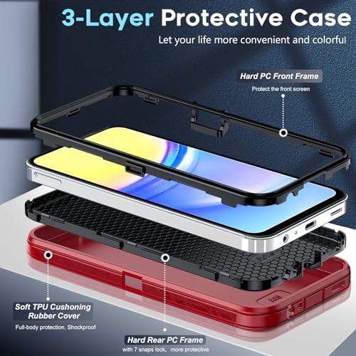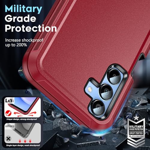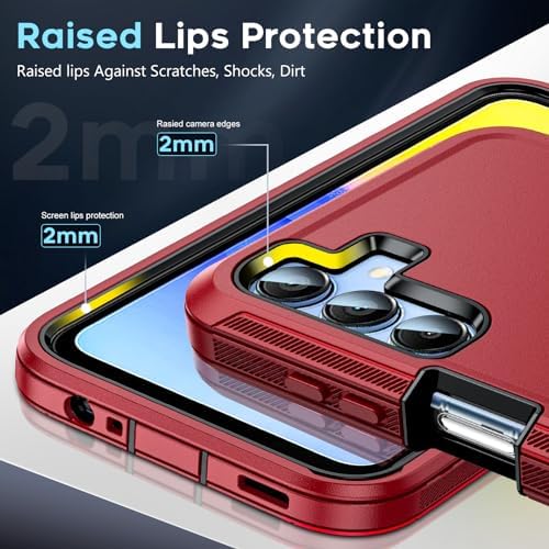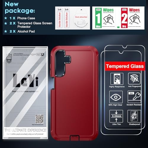 LeYi for Galaxy A15 5G Phone Case: Samsung Galaxy A15 5G Cover with [2 Pack] Tempered Glass Screen Protector, Military Grade Shockproof 3 in 1 Full Body Protection Hard Funda para Samsung A 15 5G, Red