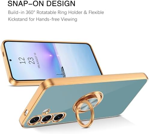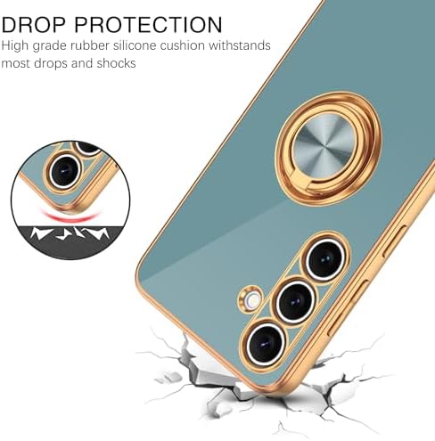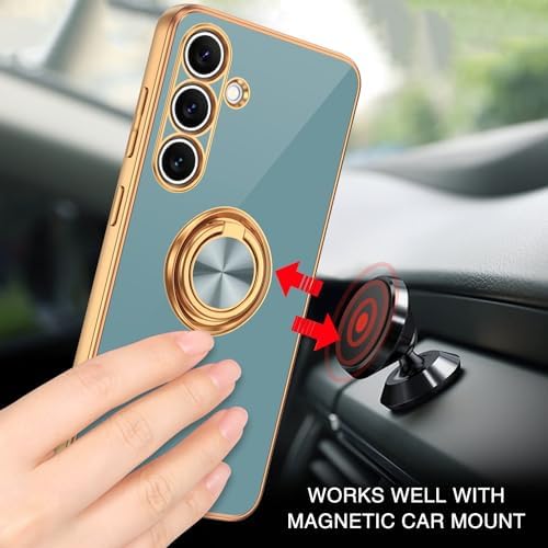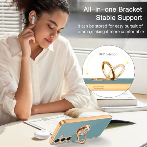 BENTOBEN Compatible with Samsung Galaxy S24 Phone Case 6.2" 2024, Slim Fit Kickstand Ring Holder Design Shockproof Protection Soft TPU Bumper Drop Protective Cute Girls Women Men Boy Cover, Grey/Gold