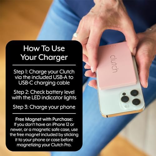 Clutch Pro - With 5,000 mAh of power, this charging bank is designed for products like smartphone, headphones, keyboards, and tablets. Ditch your wires because our chargers come with a built-in cable for easy charging on the go. Attach to Your Phone - Magnetizes to certain phone models, as well as Magnetic Safe cases. Or, slap our portable charger directly onto your phone with our free included magnet and you are good to go! Perfect for travel, our chargers are approved for airplane carry-on. Sleek and Ready - More compact and slimmer than other leading chargers, at just 3.86" x 2.64" x 0.32" the Clutch Pro won't take up too much space in your pocket or purse. Includes a USB-A to USB-C charging cable to charge your power bank right out of the box. Charge With Confidence - Clutch Pro takes 2 hours to fully charge to 5000 mAh with LED battery level indicators for peace of mind. One charge has enough juice to power your phone for well over one day, even with heavy use. Compatible With - iPhone 5 / 5c / 5s / 6 / 6 Plus / SE / 7 / 7 Plus / 8 / 8 Plus / X / XS / XS Max / XR / 11 / 11 Max / 12 / 12 Pro / 12 Pro Max / 12 Mini / 13 / 13 Pro / 13 Pro Max / 13 Mini / 14 / 14 Pro / 14 Pro Max / iPad 4, iPad Air, iPad Air 2, iPad Mini, iPad Mini 2, iPad Mini 3, iPad Mini 4, iPad Pro, iPod Nano (7th Gen), iPod Touch (5th Gen), iPod Touch (6th Gen) and Airpods.
