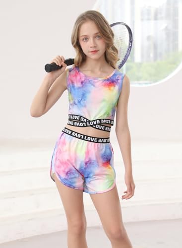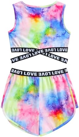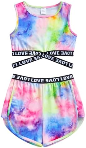 Material:This girls outfits sets is made of 95% polyester and 5% spandex,which is soft, comfortable, and skin-friendly to your kids. not easy to wrinkle or fade after washing. Cross-strap design:The girls shorts sets with crop top,high elastic cross-strap letter waistband, and don't have to worry about the vest moving up even if you stretch it greatly. Wide leg design: the girls clothing sets with sport shorts ,the elastic waistband and the design of side spliced shorts fit for running or jumping, make kids more convenient and comfy Various pattern: Girls 2 piece outfits have many patterns, such as splash ink ,sunflower,graffiti,flowers,mermaid,hawaiian style and other novel print for your choice Occasions: Suitable for casual,sport wear,vacation,back to school,daily life and so on,this girls 2 pieces shorts set which lightweight,breathable. loose and casual fit accommodate a variety of body types #56,215 in Clothing, Shoes & Jewelry ( ) #57 in