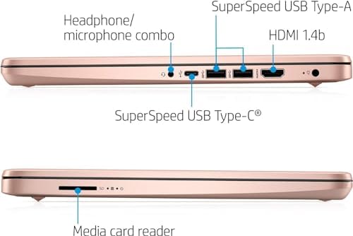 HP Newest 14" HD Ultra Light Thin Laptop, Quad-Core Intel Celeron Processor, 4GB RAM, 128GB (64GB eMMC+ 64GB Card), Wi-Fi, Upto 11 Hours, Windows 11 S + 1 Year Office 365+HubxcelAccessory, Rose Gold