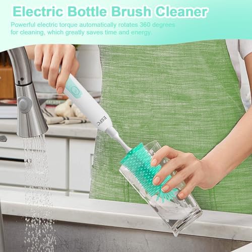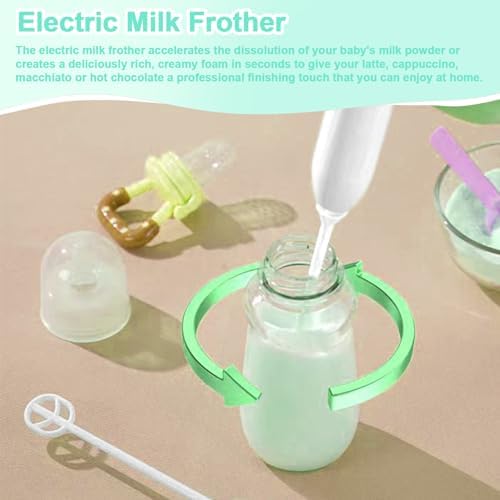 [6-in-1 Electric Bottle Cleaner Kit]--Includes electric bottle brush cleaner,water bottle brush, nipple brush, straw cleaner brush, milk frother,Travel organizer with drying base,perfect baby bottle cleaning kit for newborn parents. [Reusable Electric Baby Bottle Brush]-Two-speed mode is paired with a 1200mAh large-capacity battery and the replaceable brush heads made it can be reused again and again for a longer life. [Electric Milk Frother]--The electric milk frother accelerates the dissolution of your baby's milk powder or creates a deliciously rich, creamy foam in seconds to give your latte, cappuccino, macchiato or hot chocolate a professional finishing touch that you can enjoy at home. [Baby Shower Gift]:Automatic baby bottle brushes and electric milk frother can help new mothers save time and energy, and are completely essential for newborns.