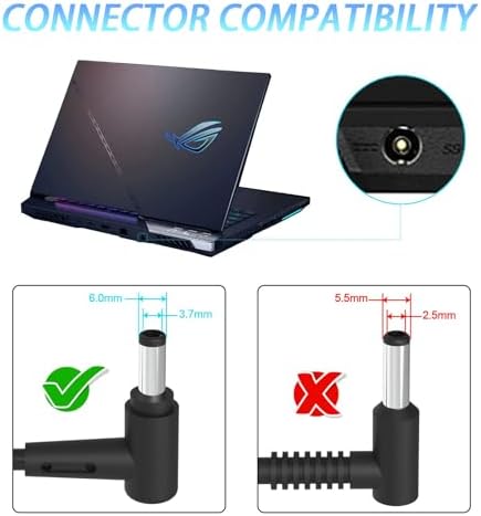 Compatible Adapter P/N.: ADP-240EB B Specifications: Input: 100-240V 50-60Hz Adapter Output Voltage: 20V Adapter Output Current: 12A Adapter Power: 240W Adapter Plug Size: 6.0x 3.7mm a pin in center Compatible Model: For Asus ROG Zephyrus M16 GU603HR GU603HM For Asus ZenBook Pro Duo 15 OLED (UX582) For Asus ROG Zephyrus Duo 15 SE (GX551QM) For Asus ROG Zephyrus Duo 15 GX550LXS GX550LWS For Asus ROG Zephyrus S17 GX701LXS GX701LWS GX701LV For Asus ROG Zephyrus S15 GX502LXS GX502LWS For Asus ROG Strix SCAR 17 G733QM G733QR G733QS G733QSA For Asus ROG Strix SCAR 15 G533QM G533QR G533QS For Asus ROG Strix G15 G513QM G513QR G513IM For Asus ROG Strix G17 G713IM G713QR G713QM Compatible Model: For Asus ROG Strix Scar 15 G533QS G533QS-XS98Q G533QS-HF083TS G533QS-HQ132T Package: 1 AC Adapter + 1 Free Power Cord High quality with 100% brand new over charge, over current, over voltage, short-circuit and over heat protection High precise output voltage, small wave and low interference Made of quality components and circuit board Safe and durable