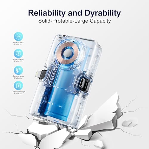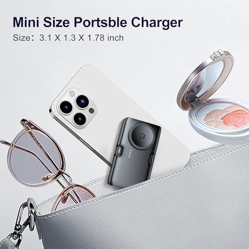 ✔️Pocket-Sized Power: Equipped with a built-in LT and Type C port connector,compatible with Apple Watch Series making it easy to charge your Apple devices without having to carry an extra cable. ✔️Portable Travel Charger:Compact and lightweight , you can easily put this portable charger in your pocket or hang it on your backpack, which is a great travel companion.Equipped with a holder, it can stabilize your iPhone, providing added convenience for various scenarios. ✔️Compatibility Charge Multiple Devices :This portable battery charger is widely compatible with iPhone 15/14/13/12/Pro Max series, Apple Watch 9/8/7/6/5/4/3/2/1/SE/Ultra, as well as other Type C Android devices or tablets. ✔️PD 20W Fast Charging : The built-in cable supports PD 20W fast charging, providing your iPhone with 60% juice in 30 minutes,Power your device quickly and efficiently. ✔️Superior Safety Features: Portable charger battery pack has built-in over temperature, over current, over voltage and short circuit protection to ensure you use the product safely.