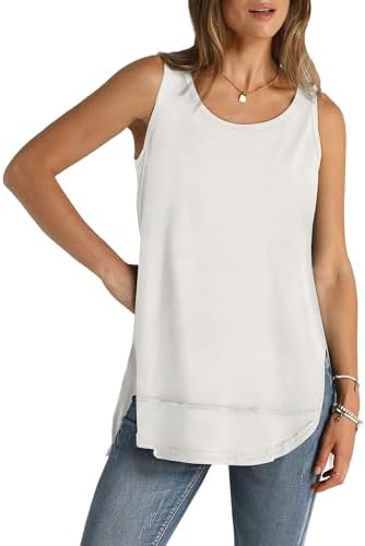WIHOLL Loose Fit Tank Tops for Women Scoop Neck Summer Side Split Sleeveless Shirts 2024 Fashion