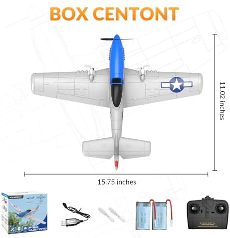 VOLANTEXRC RC Plane P51D Mustang RTF for Beginners, 2.4Ghz 2CH Remote Control Airplane Easy to Fly with Gyro Stabilization, Outdoor Hobby WWII Toy Gift for Kids & Adults (Blue)