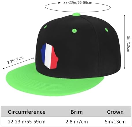Material Description: This Flag Map of Réunion (France) Snapback Hat It Is Made Of 100% High Quality Polyester Fiber, Lightweight, Breathable And Durable, Wear This Comfortable Hat During All Outdoor Activities To Protect Your Skin From Uv Rays And Protect Your Hair And Eyes From The Scorching Sun. It Is Stylish And Comfortable, And Also Protects Against Sunlight And Sweat. Its Stylish Look Matches Perfectly With Your Favorite Outfits. Adjustable: The adjustable buckle on the back allows you to freely adjust the size of the hat to fit most people with different head shapes and enjoy a perfect wearing experience. Practical breathable holes design is stylish to wear without being stuffy! This stylish hat for both men and women is designed with soft classic panels that eliminate unwanted creases. Comfortable And Breathable: The Top Of The Hat Is Reinforced And Lined With Oxford Fabric, 6 Panel Construction And 6 Embroidered Eyelets To Keep Your Head Comfortable And Breathable At All Times. A Sweatband Has Been Added To The Inside Of The Hat To Wick Sweat And Moisture Away From Your Head. The Unisex Design Of This Stylish Hat Is Suitable For Both Men And Women For All Seasons. Higher Quality: Elegant And Stylish Designs, Quality Materials And Manufacturing Processes, And Beautiful Stitching. We Work With Only The Most Reputable Manufacturers To Provide Well-Made Hats That Look Great And Are Comfortable To Wear. Multifunctional Use: The Classic And Stylish Baseball Caps Can Cope With Various Scenarios. For Example, Daily Outings, Sports, Gardening Work, Traveling And All Other Outdoor Activities. As A Birthday Gift Or Holiday Gift, It Is Also A Perfect Gift For Family, Close Friends, Coworkers And All The Important People In Your Life.