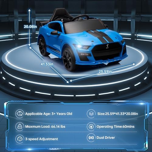 OKYBABY 12V Licensed Ford Mustang GT500 Ride on Car Toys, Electric Car for Kids W/Remote Control, Electric Vehicle with Bluetooth, Radio, Music, USB Port, LED Lights, Blue