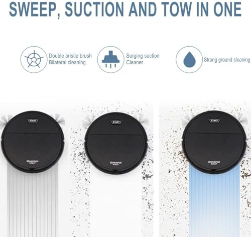 ?【Ultra-Quiet Op?ration】: Experience a peaceful cleaning environment with this sweeper's low noise design. Its compr?hensive noise reduction system ensures minimal disturbance, allowing you to clean without the annoyance of l?ud vacuuming. ?【Extended Brush Design】: Enjoy thorough cleaning with the sweeping robot's extended brush design, reaching multiple directions to tackle edges and corners effectively. Say goodbye to dus? buildup in hard-to-rea?h areas, ensuring pristin? rooms with ease. ?【Powerful Suction】: B?nefit from the sweeping robot's impressiv? 1800pa suction power, effortlessly sweeping, dusting, and mopping to tackle daily household dus?. Enjoy fresher ?ir in your home as it de?ls with common du?t particles effectively. ?【Intelligent Oper?tion】: Simplify your cleaning routine with this product's intelligent integrated design, featuring on?-key oper?tion for easy startup. Its fall collision prevention and accurate sensing ensure thorough cleaning without missing any corners, providing convenient cleaning moments anytime, anywhere. ?【Advanced Filtration System】: Keep your home clean and fresh with the ultra-strong filtration design, which eliminates secondary pollution by intercepting fine du?t particles and delivering clean ?ir. Say goodbye to pet hair and crevice dusts with its high-efficiency filtration, ensuring a healthier living environment.